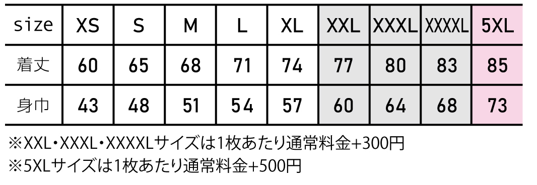※プリント場所を増やしたり色数を増やす場合は1箇所1色増えるごとに上記追加料金をたしてください。