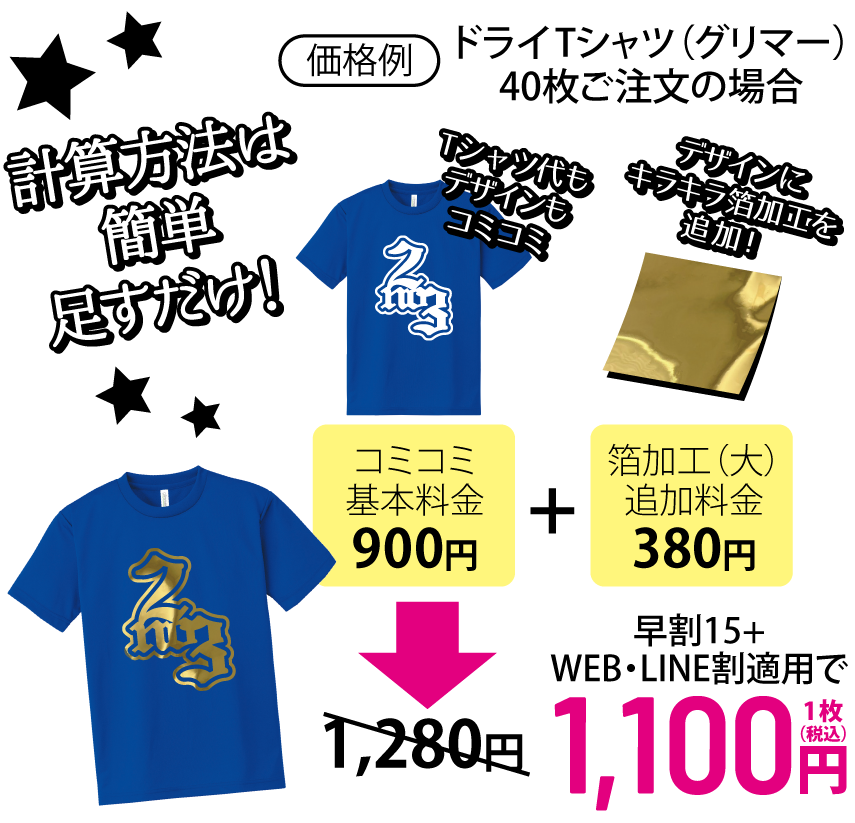 インクプリントでは表現することができないゴージャスでキラキラな箔。輝く特別なクラスTシャツを作りたい皆さんにおススメの箔プリントです。