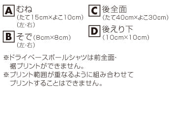 ※プリント場所を増やしたり色数を増やす場合は1箇所1色増えるごとに上記追加料金をたしてください。