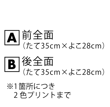 ※プリント場所を増やしたり色数を増やす場合は1箇所1色増えるごとに上記追加料金をたしてください。