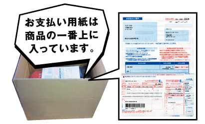 お支払い用紙は商品と一緒に同送いたします。お近くのコンビニまたは郵便局で商品の到着後1週間以内にお願いいたします。