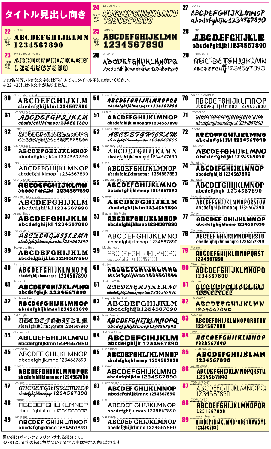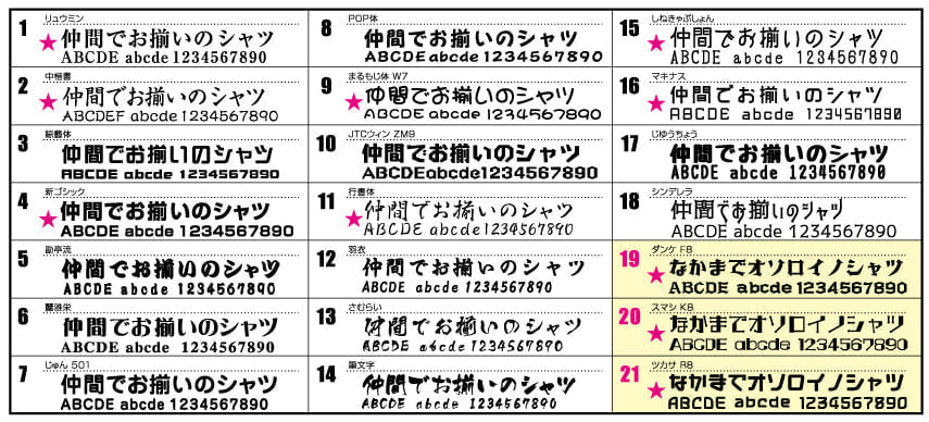 みんなお揃いのデザインで使う書体はこちらからお選びください。