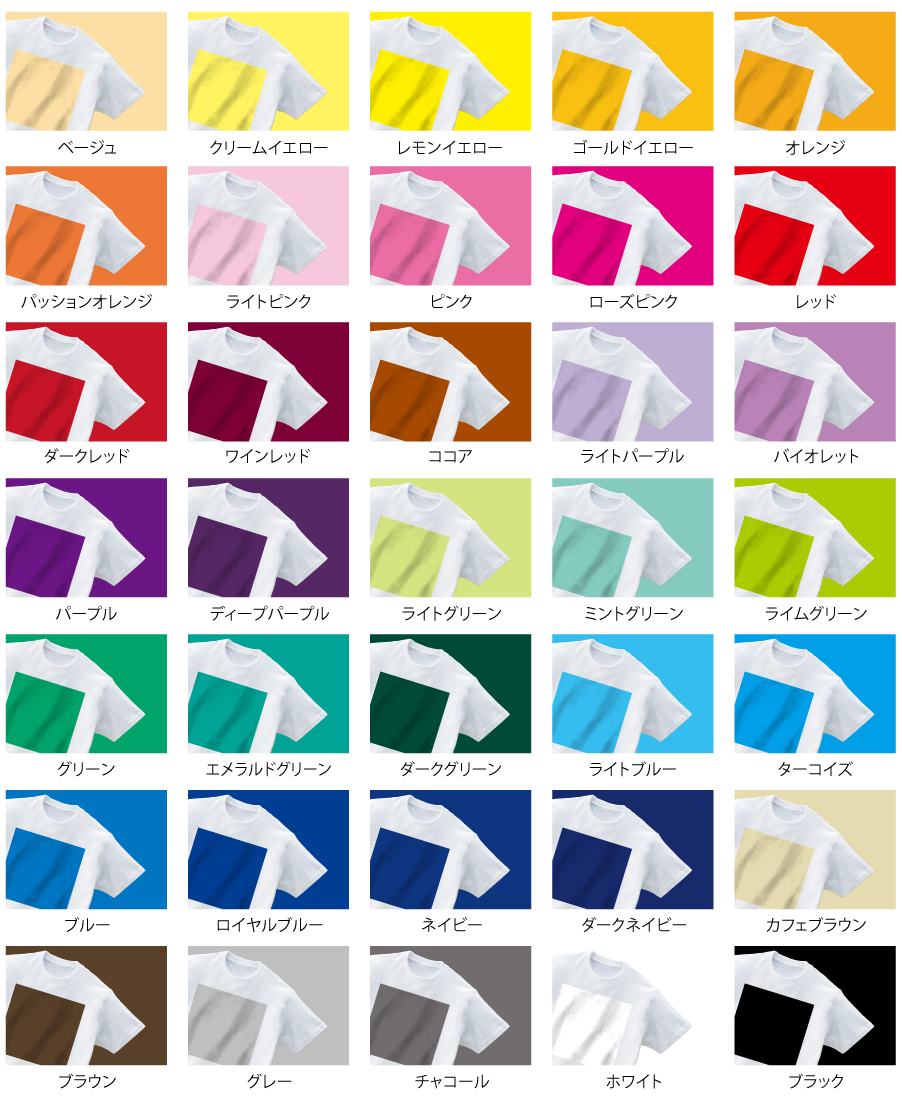 みんなお揃いのデザインで使うカラーはこちらからお選びください。