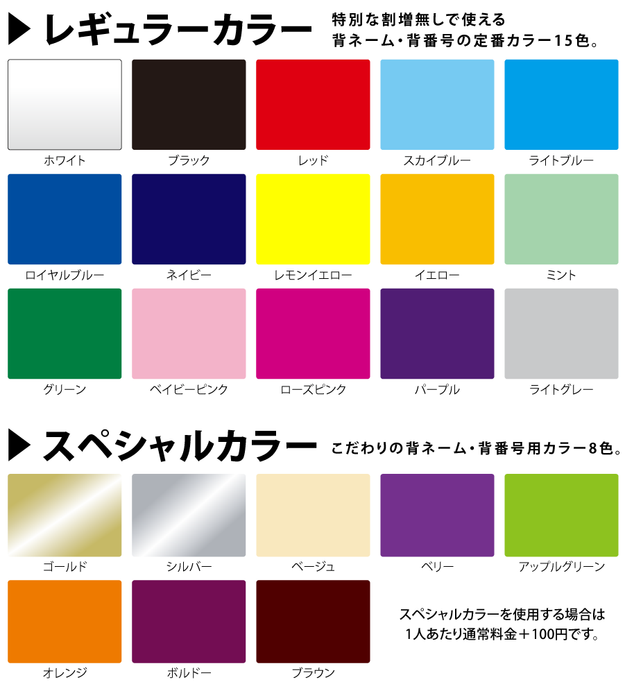 背ネーム・背番号用カラー