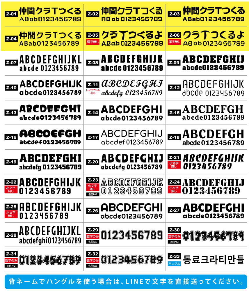 ※お名前にひらがな・カタカナ・漢字が含まれる場合は、Z-01〜Z-06からお選びください。