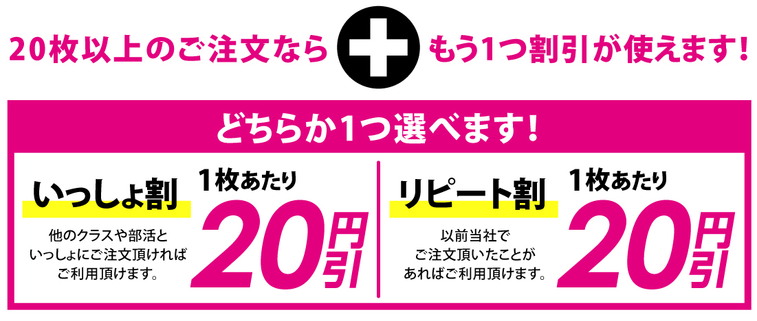 ※いっしょ割は一緒にご注文するクラス・部活と同じ日にご注文して頂き、打ち合わせができることが条件です。