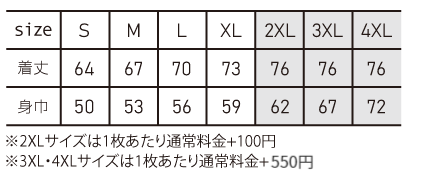 ※プリント場所を増やしたり色数を増やす場合は1箇所1色増えるごとに上記追加料金をたしてください。