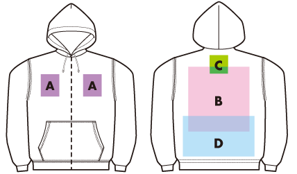 ※プリント場所を増やしたり色数を増やす場合は1箇所1色増えるごとに上記追加料金をたしてください。