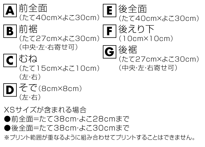 ※プリント場所を増やしたり色数を増やす場合は1箇所1色増えるごとに上記追加料金をたしてください。
