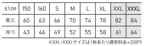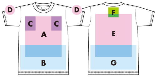 ※プリント場所を増やしたり色数を増やす場合は1箇所1色増えるごとに上記追加料金をたしてください。