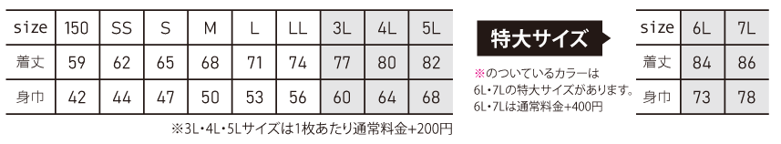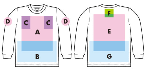 ※プリント場所を増やしたり色数を増やす場合は1箇所1色増えるごとに上記追加料金をたしてください。