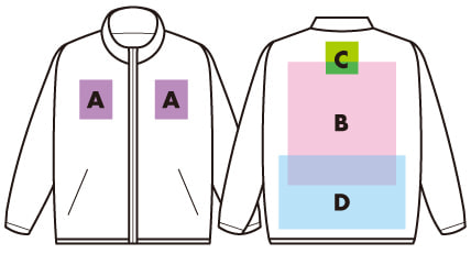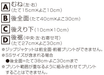 ※プリント場所を増やしたり色数を増やす場合は1箇所1色増えるごとに上記追加料金をたしてください。