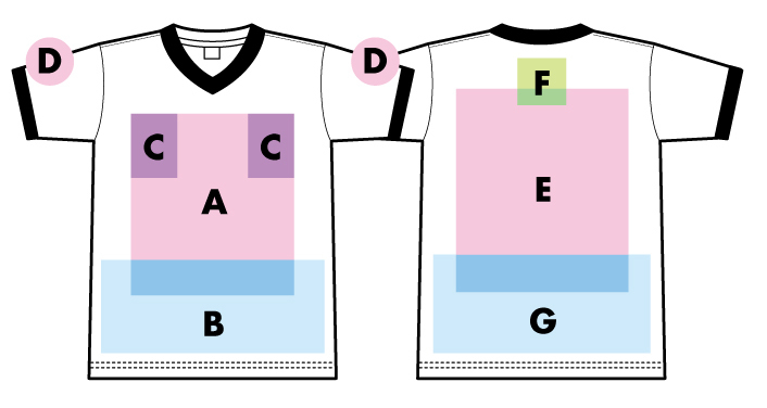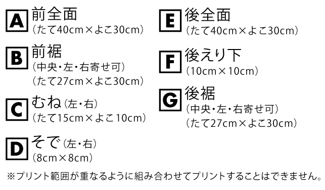 ※プリント場所を増やしたり色数を増やす場合は1箇所1色増えるごとに上記追加料金をたしてください。